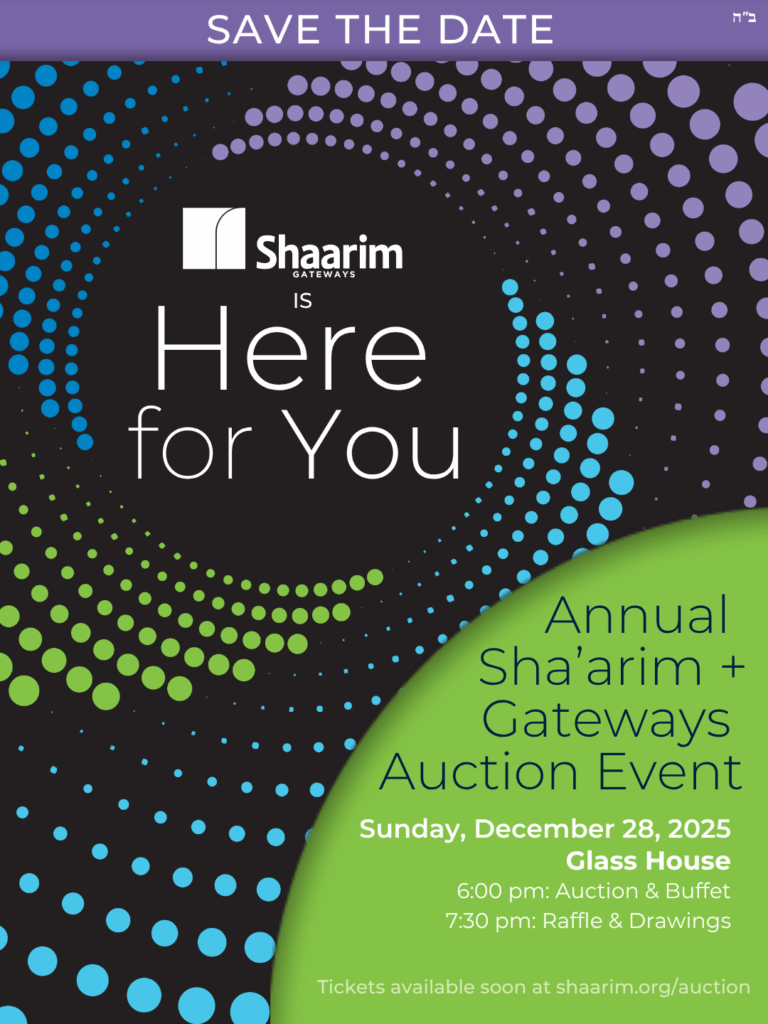 It’s that time of year again for the annual Sha’arim + Gateways Auction! Mark your calendars for Sunday, December 28th and join us in celebrating a truly inclusive Jewish Community! Keep your eyes peeled for the official prize catalog in your mailboxes and online soon!